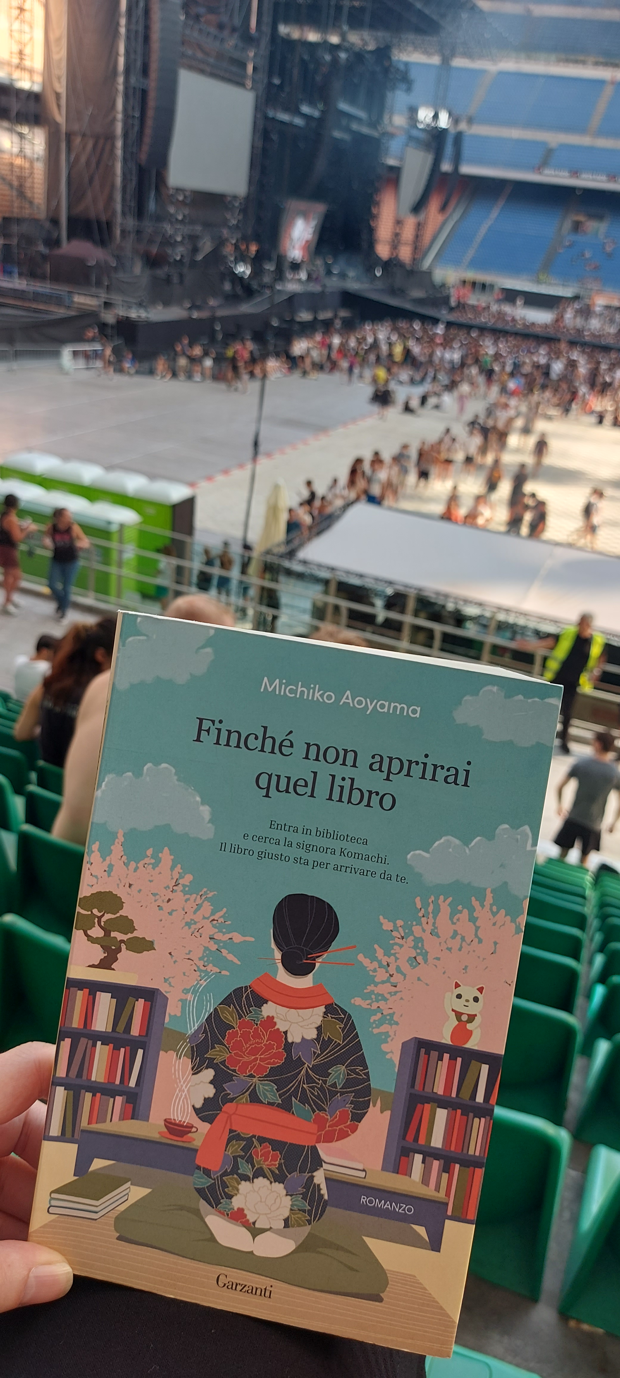 Giunte a San Siro, attendiamo che inizino i gruppi spalla e nel frattempo sistemo l’acquisto fatto (mi ero dimenticata di dirvi anche del salto in libreria) da Mondadori, acquisto dal quale si evince che, noi non lo sapevamo, ma eravamo già contaminate.